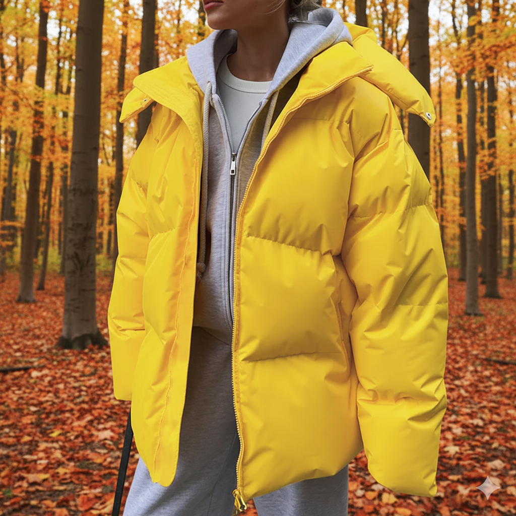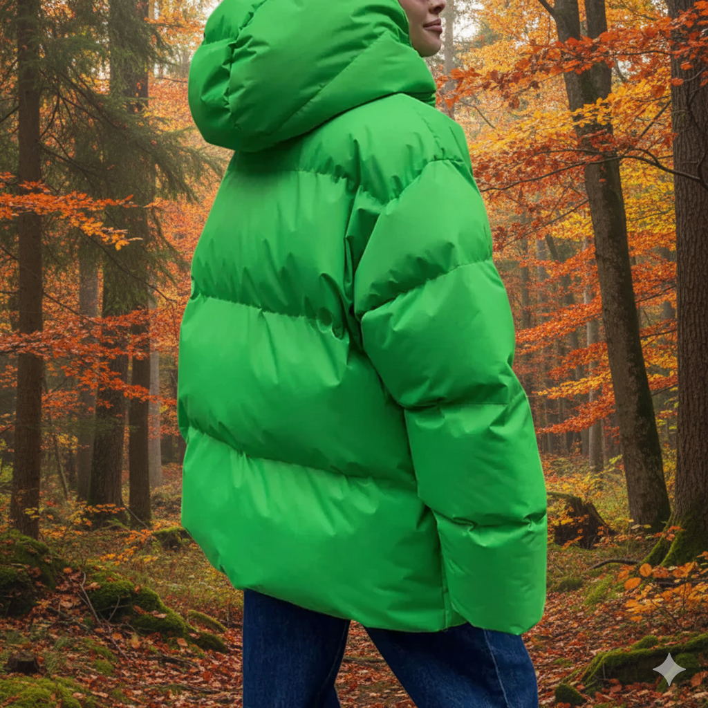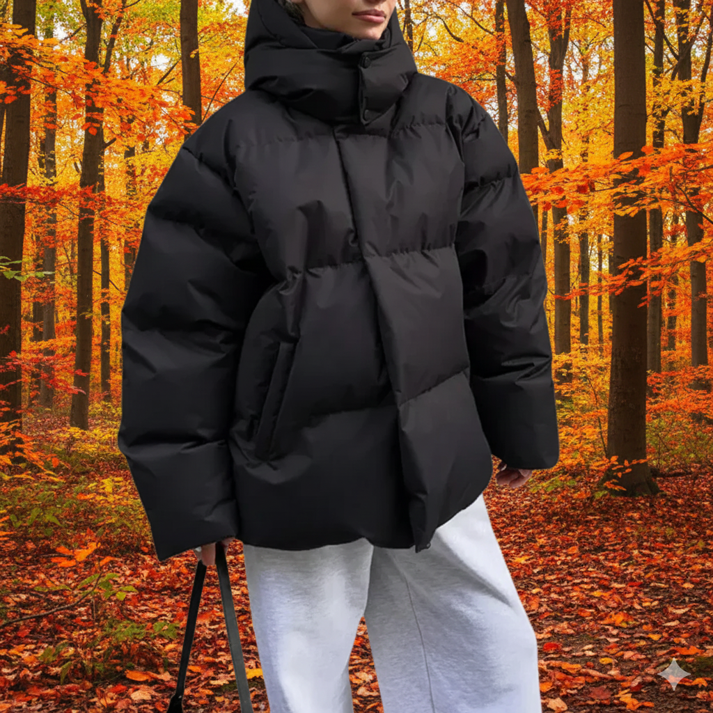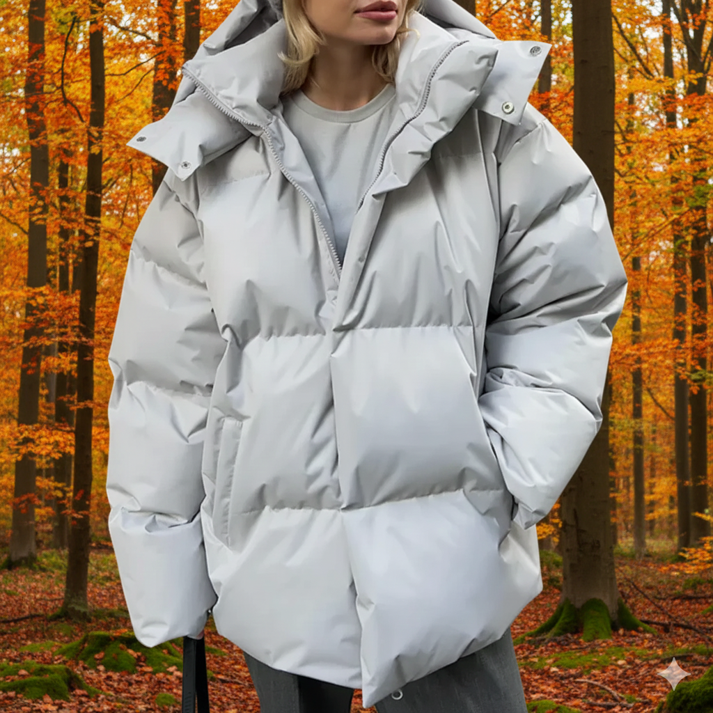 • Design: Quilted, oversized, hooded